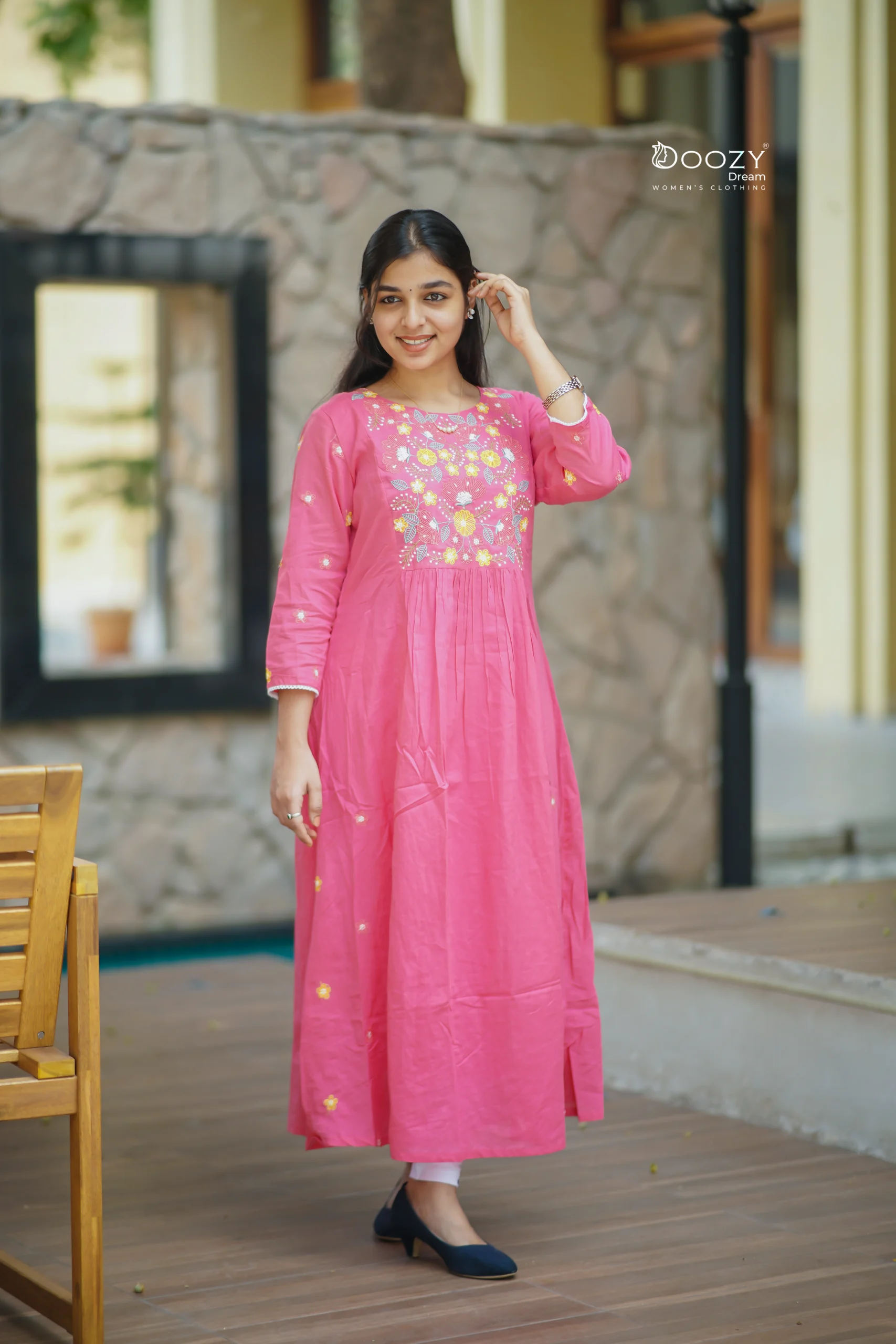 3/4th sleeves with minimal detailing for a neat, graceful look