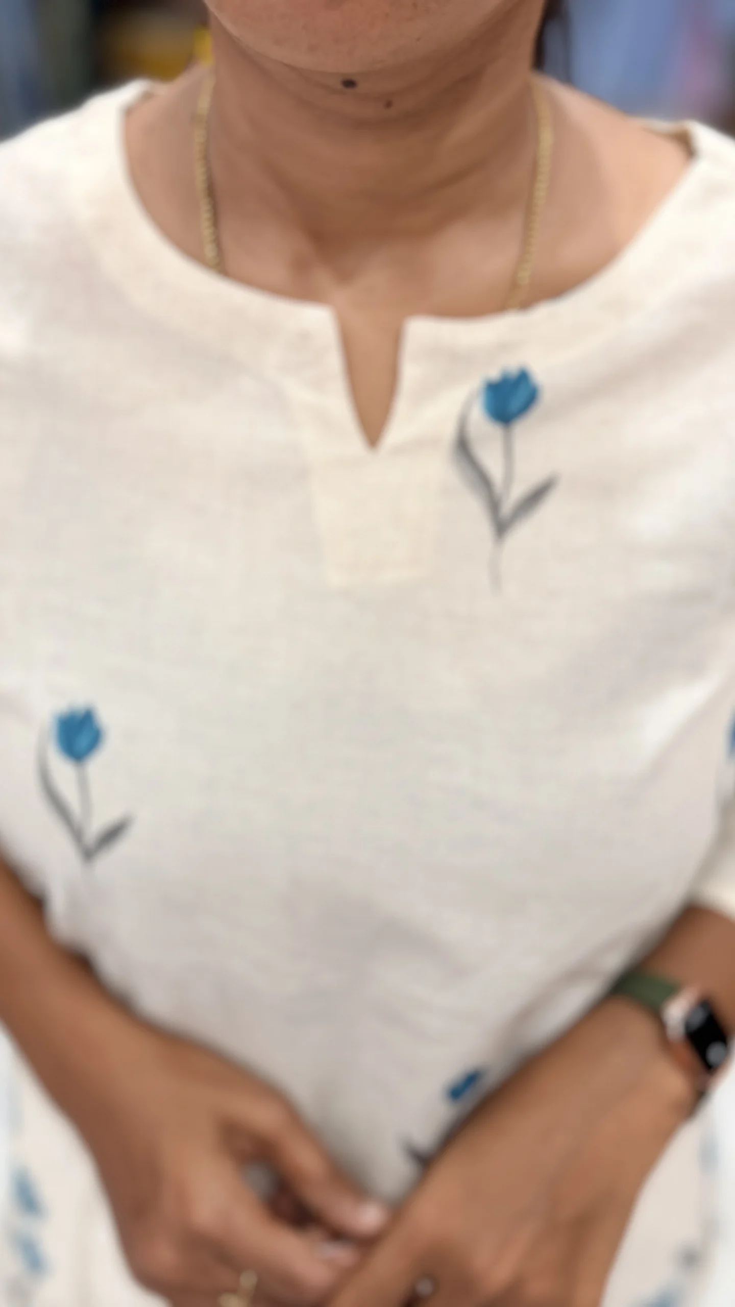 - 3/4th sleeve kurti with a minimal notch neckline