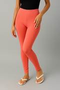 Elevate your basics with these stunning coral Leggings. Crafted from a soft, breathable fabric blend, these leggings offer a perfect balance of stretch and support for a flattering, second-skin fit. The clean, minimalist design with a smooth waistband ensures maximum comfort, making them ideal for layering or wearing solo. Whether you're heading to yoga, running errands, or dressing up for a casual-chic look, these leggings are your ultimate go-to. Pair effortlessly with tunics, crop tops, or oversized sweaters for endless styling possibilities.
