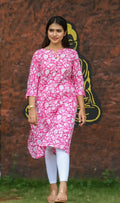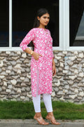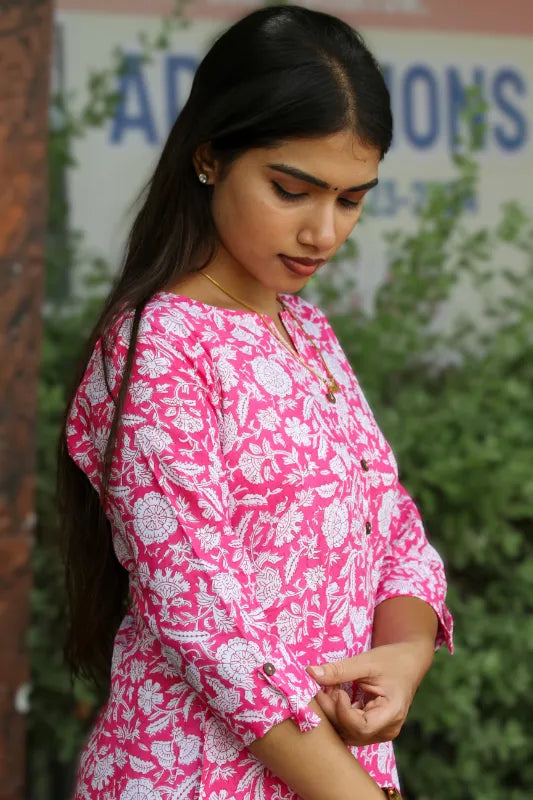 Let your style bloom with the Gulnaar Grace Kurti – a celebration of femininity and festive charm. Drenched in a vibrant pink with elegant white floral prints, this kurti is designed to bring a refreshing glow to your everyday wardrobe.