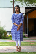 The flattering A-line silhouette, three-quarter sleeves, and soft breathable fabric make it a perfect companion for both festive days and casual outings. Whether you're attending a local festival or stepping out for a brunch, this piece brings a quiet charm to every moment.