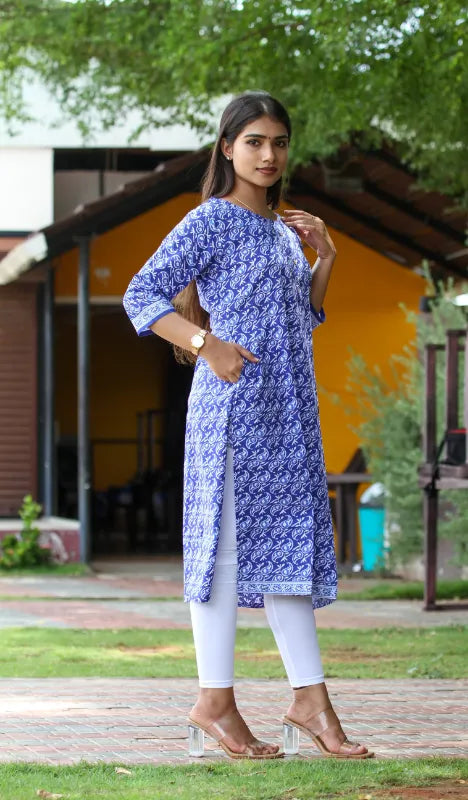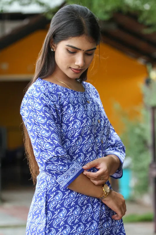 Wrap yourself in serene sophistication with the Neel Noor Kurti, where tradition whispers through every thread. Designed in a deep, calming blue and adorned with delicate white motifs, this kurti blends grace with everyday ease.