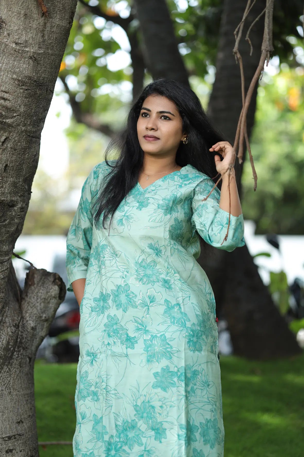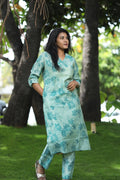 Bask in the calm elegance of the Ocean Breeze Floral Kurta Set, a refreshing ensemble that brings together comfort and charm. Crafted from breathable cotton, this set features a soothing mint green base adorned with delicate teal floral prints, creating a subtle yet stylish look. The kurta comes with a V-neckline and three-quarter sleeves, perfectly complemented by matching straight pants for a coordinated and polished appearance. Ideal for casual outings, workdays, or summer get-togethers, this set keeps you effortlessly graceful all day long.