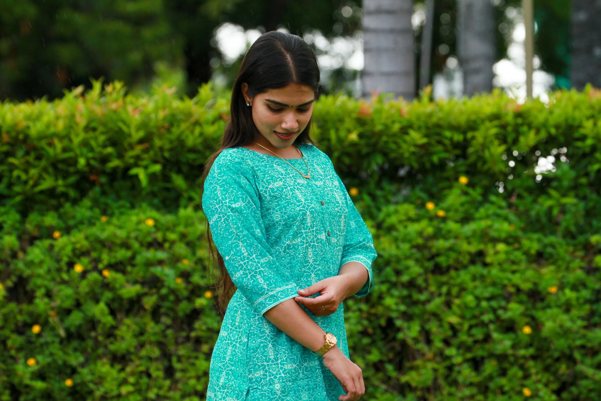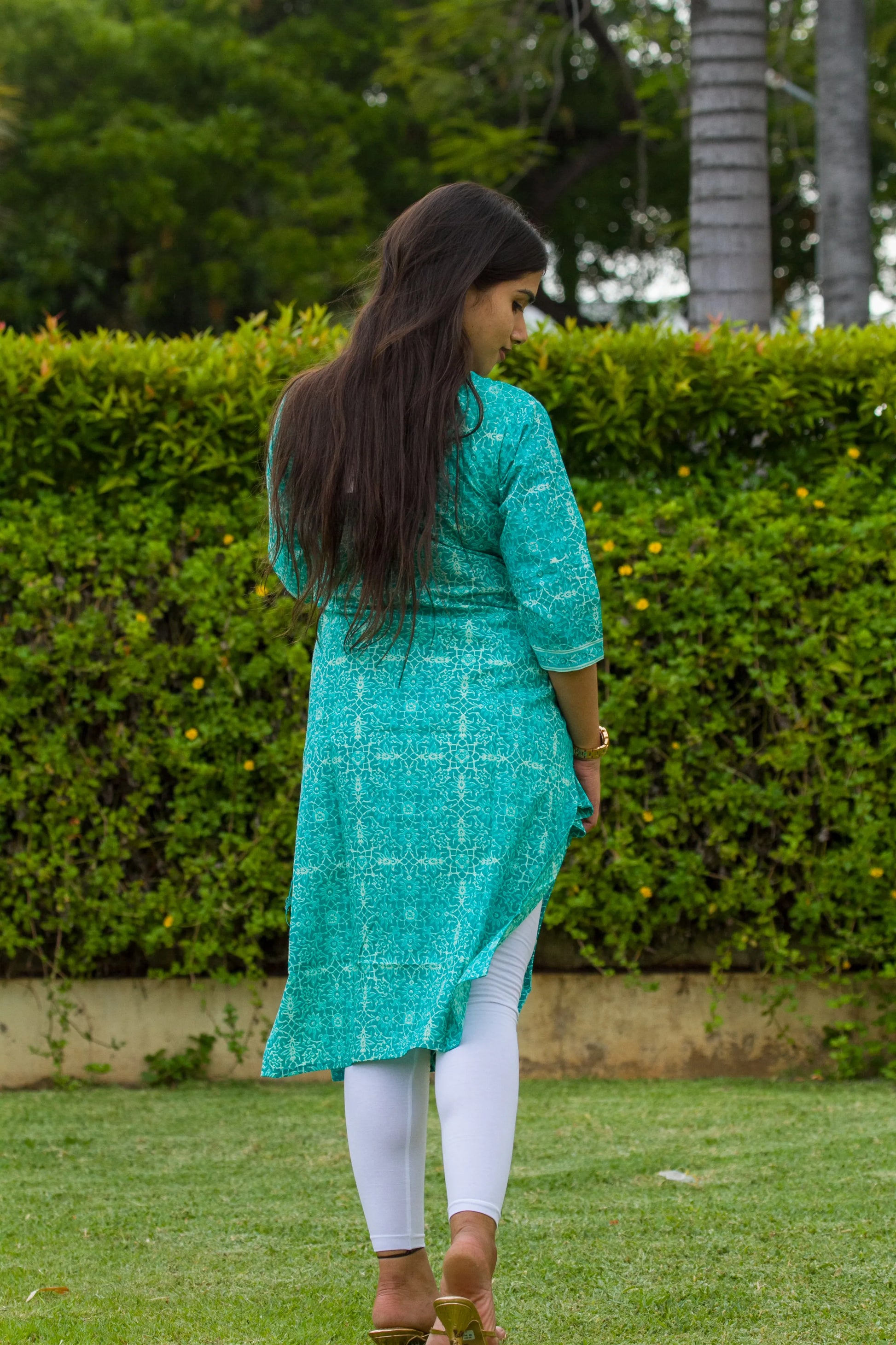 Look effortlessly chic in our comfy Aqua Print Kurta!
